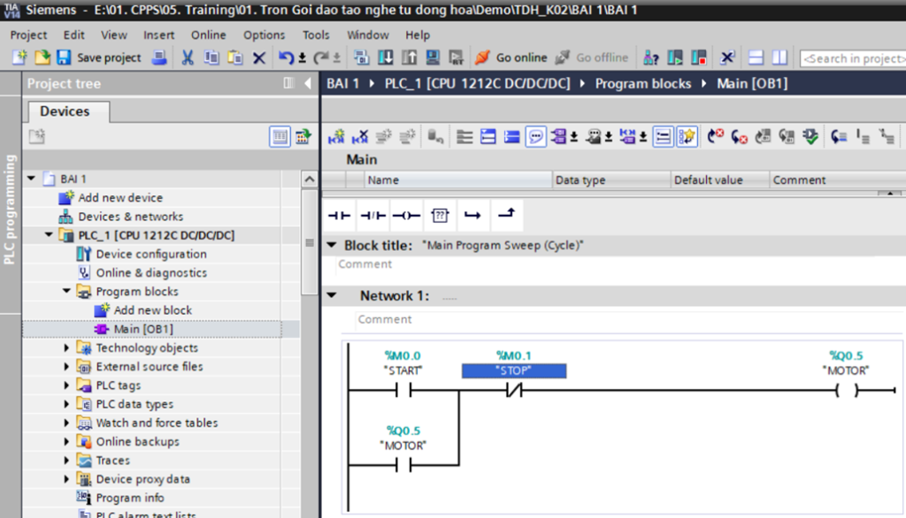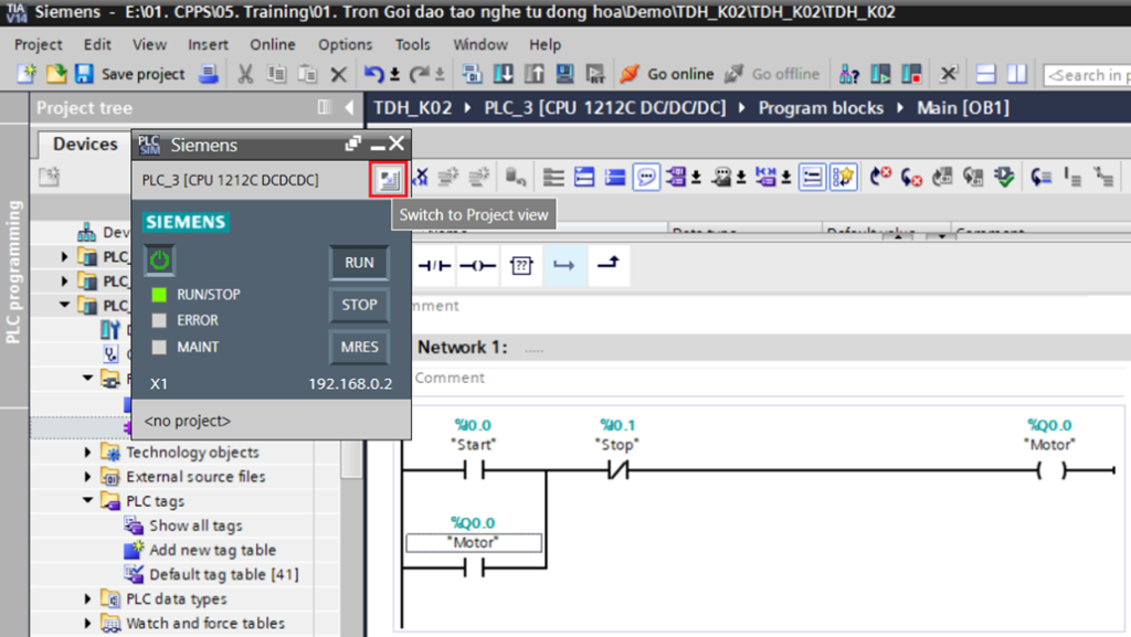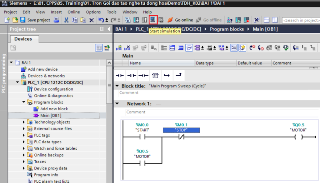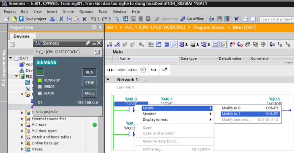 Chạy mô phỏng PLCSIM để có thể Force được ngõ vào phần cứng PLC (I0.0, I0.1…)