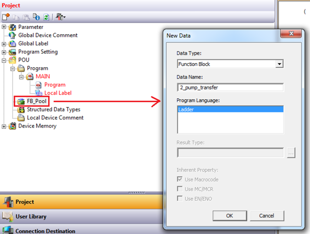 Bước 2: Tạo 1 function block mới và đặt tên là “2_pump_transfer”