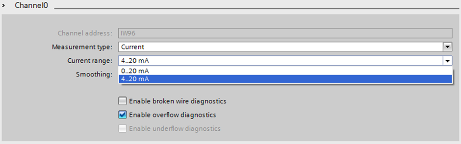 Nếu chọn ngõ vào dòng điện: Current range chỏ thể lựa chọn: 4..20mA hoặc 0..20mA