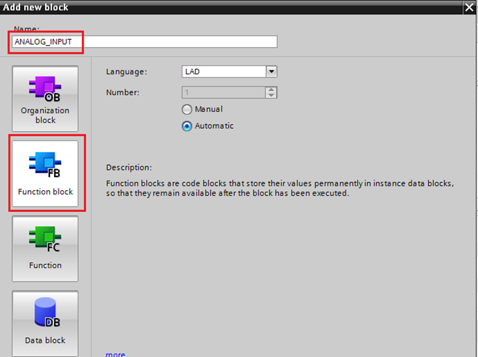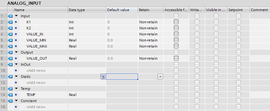 Bước 4: Khai báo biến ngõ vào ngõ ra của function block